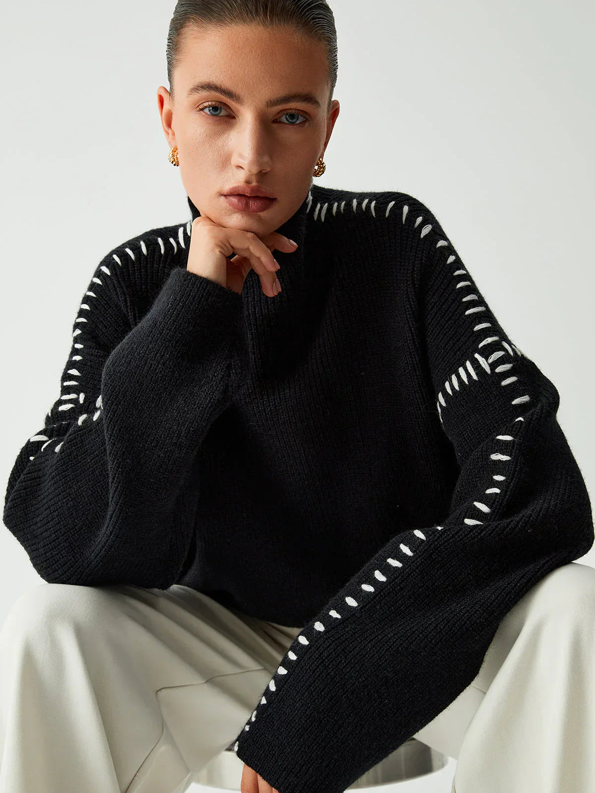 Raffinierte Seitennähte: Die Ziernähte an den Ärmeln verleihen einen Hauch von Raffinesse. Diese subtilen Details sind ein visuell ansprechendes Element, das den Pullover auf subtile Weise hervorhebt.